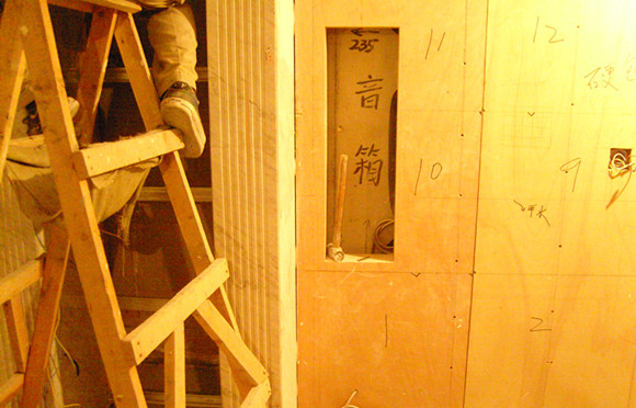 这是一个用作审片室的影音室,影音制作公司对声音和画面的要求很高,而房间的原始结构不能满足专业设计要求,根据方案进行了一部分改造,新砌了墙一小段砖墙,更有利于专业效果。